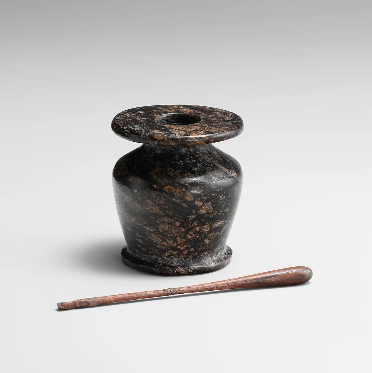 Egyptian kohl pot and applicator, ca. 1492-1473 B.C.E. Image from metmuseum.org